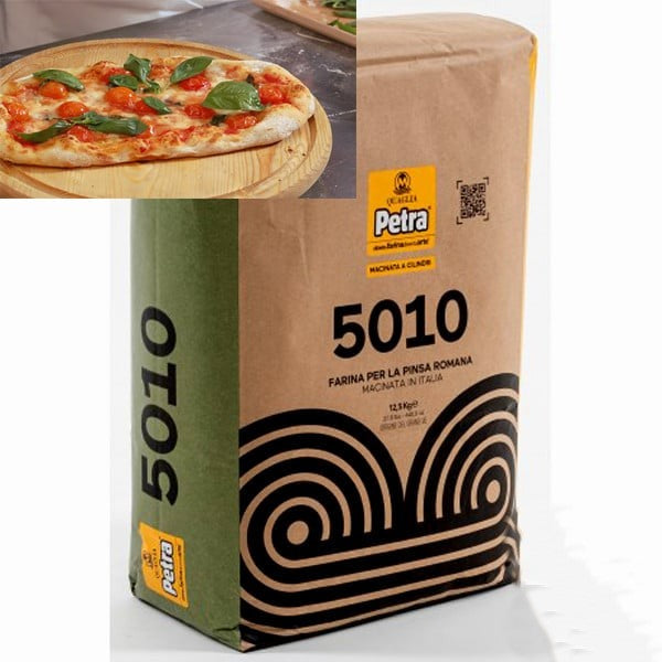 Free from additives, Petra 5010 creates highly hydrated doughs ideal for medium and long leavening, thanks only to the protein quality of specially selected wheat. Doughs made with Petra 5010 are stable and easy to work with. The finished product is characterized by a remarkable lightness and unique crumbly quality. Rice flour ensures maximum melt-in-the-mouth quality. Suitable for: pinsa Romana, pan pizza, focaccia with medium and long leavening times (8 hours at room temperature of 22-25°C, up to 48 hours in a refrigerated condition at 4°C). It can be used with direct and indirect doughs, and with live sourdough starter. NB: The 1 and 5 kg packs are portioned from larger bags.