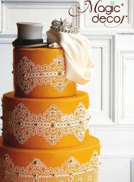 Il preparato Magic Decor Pavoni ti permette di realizzare decorazioni come ad esempio pizzi commestibili delicati come sino ad ora solo i professionisti riuscivano a creare.