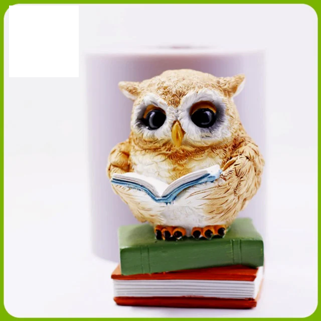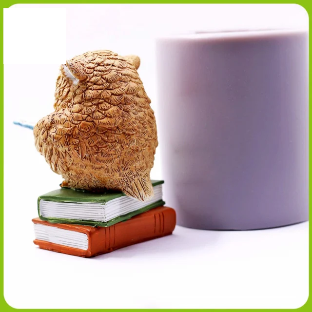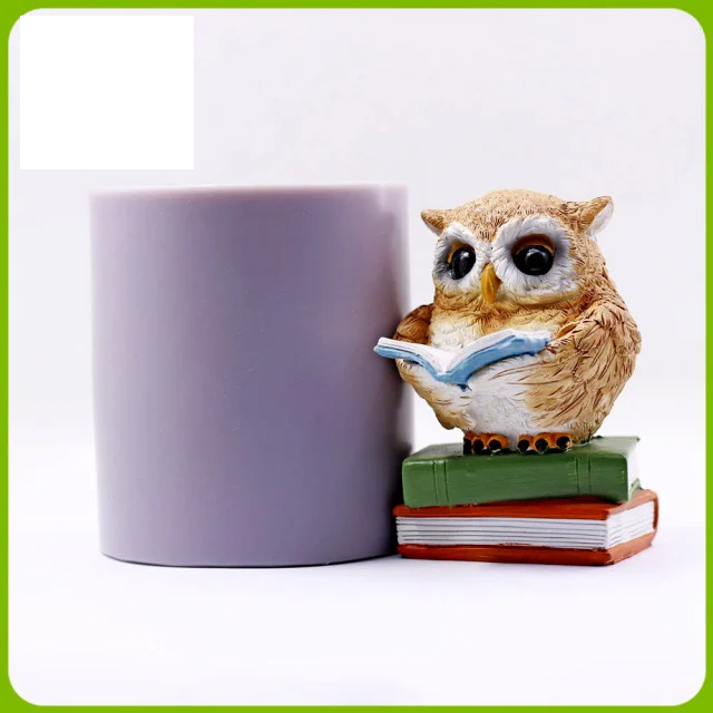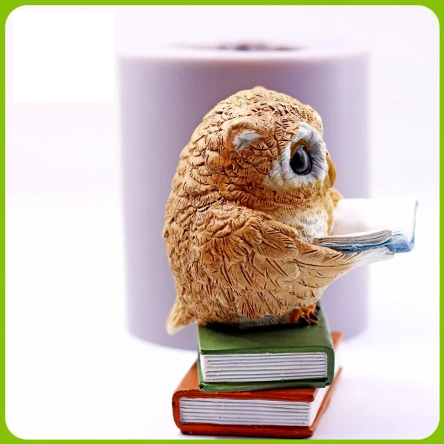 Fantastico grande Gufo di 9.5 cm con libri. Stampo ad alta risoluzione in silicone